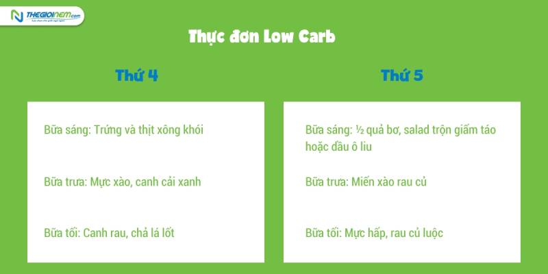 Thực đơn Low Carb vào thứ 4 và thứ 5