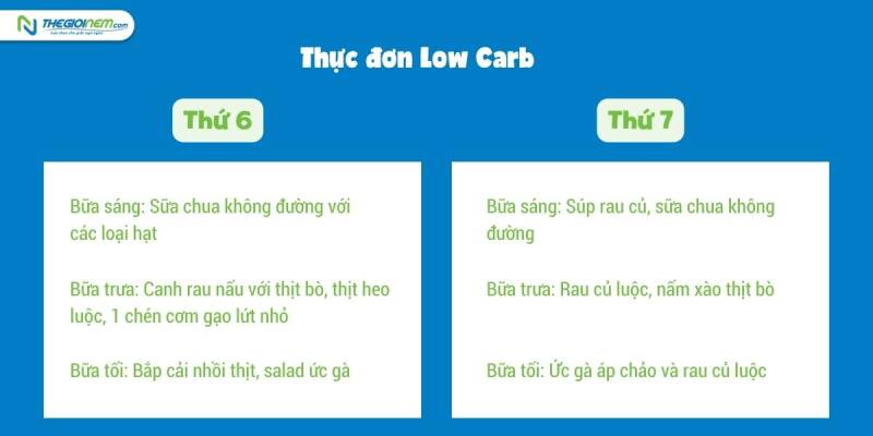 Thực đơn Low Carb vào thứ 6 và thứ 7