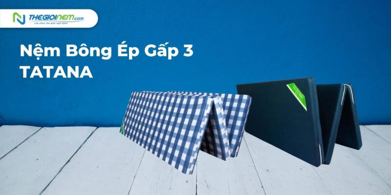 - Nệm bông ép gấp 3 Tatana được tạo thành từ các sợi bông cao cấp, có độ đàn hồi vừa phải, nâng đỡ cơ thể tối ưu. Nệm không gây võng lưng khi nằm, không gây xẹp lún, thoáng khí cao, thoáng mát và kháng khuẩn, an toàn cho sức khỏe mang đến cho bạn giấc ngủ ngon.