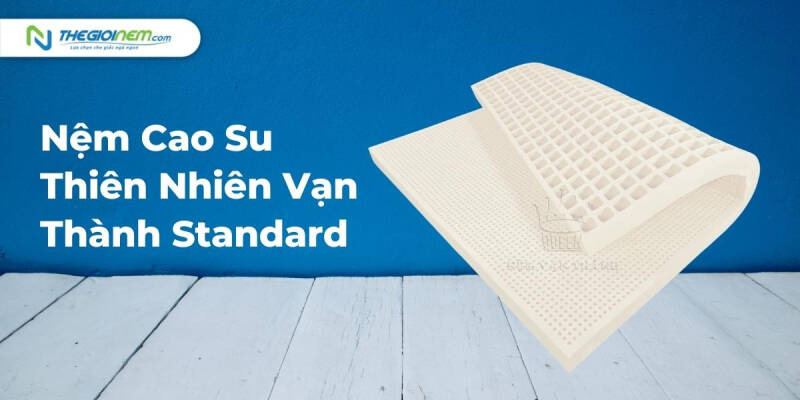 - Nệm Cao Su Thiên Nhiên Vạn Thành Standard được sản xuất trên dây chuyền hiện đại đảm bảo an toàn cho sức khỏe. Sử dụng nguyên liệu 100% cao su thiên nhiên đã được xử lý kháng khuẩn và vi nấm bởi tổ chức SGS. Nệm được thiết kế bởi nhiều lỗ vuông lớn có tác dụng nâng đỡ, bảo vệ cso thể, bền bỉ sau thời gian sử dụng.