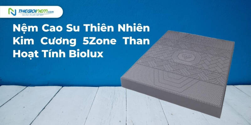 - Nệm Cao Su Thiên Nhiên Kim Cương 5Zone Than Hoạt Tính Biolux được làm từ 100% cao su thiên nhiên và than hoạt tính được dẫn truyền bao cao su thiên nhiên, giúp kết cấu thêm dẻo dai, bền chắc có công năng khá khuẩn, lọc không khí và khử mùi tốt. Nệm giúp ngăn chặn sự xâm nhập của vi khuẩn từ bên ngoài, giúp khử mùi hôi và mùi cơ thể hiệu quả mang đến giấc ngủ ngon thoải mái.