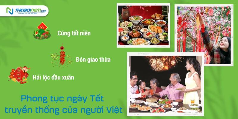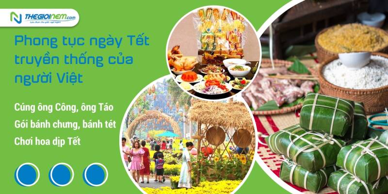 Tết Nguyên Đán là khoảnh khắc để mọi người có thể sum vầy, thư giãn và chia sẻ những niềm vui nỗi buồn của một năm vừa qua. Đây là ngày lễ lớn nhất trong năm với vô vàn nghi thức văn hóa, phong tục tập quán đặc sắc. Trong bài viết này, Thế Giới Nệm xin chia sẻ 15 phong tục ngày Tết truyền thống của người Việt mà thế hệ trẻ nên biết để lưu giữ và tiếp tục phát huy. Hãy theo dõi ngay sau đây bạn nhé!