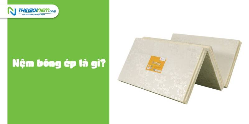Theo đúng định nghĩa chuyên môn trong lĩnh vực chăm sóc giấc ngủ thì nệm bông ép (hay còn có tên là Cotton Mattress) là một loại nệm được tạo ra bằng cách ép toàn bộ lượng bông với nhiệt độ hoặc áp suất lớn. Nệm bông ép không quá đàn hồi nhưng thiết kế rất nhỏ gọn, giá thành lại rẻ hơn nhiều so với các dòng nệm khác như nệm cao su, nệm lò xo, ... nên sản phẩm này rất được tin dùng và ưa chuộng sử dụng.