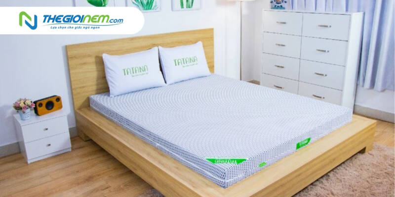 Nệm cao su nhân tạo Tatana được sản xuất bằng nguyên liệu nhập khẩu nên có được độ đàn hồi cao. Bên cạnh đó, nệm còn được trang bị thêm hàng nghìn lỗ thông hơi, tạo nên sự mát mẻ. Đảm bảo khi nằm ngủ trên nệm bạn sẽ không bị nóng lưng, nực nội và giấc ngủ cũng sẽ không ảnh hưởng.