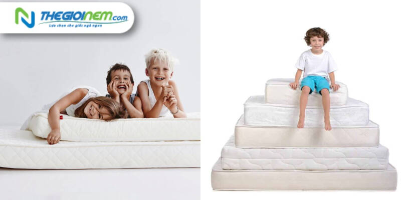 Các dòng nệm cao su rất phù hợp dành cho trẻ em là nệm cao su em bé Liên Á Bambino, nệm cao su em bé Vạn Thành Tender Care, nệm em bé Kim Cương Diamond Angel,... nếu các mẹ thích chất liệu foam hơn thì có thể tham khảo qua nệm Foam Relax Tatana, nệm ép dẻo Modern Mixed Foam Massage,...