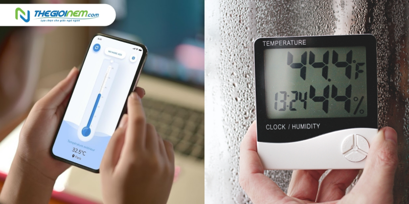 Hiện nay, trên điện thoại di động, có nhiều ứng dụng được phát triển để đo nhiệt độ và độ ẩm trong phòng, ví dụ như ứng dụng "Nhiệt kế ++" hoặc "Nhiệt kế cho phòng". Bạn có thể truy cập CH Play (dành cho Android) hoặc App Store (dành cho iPhone) để tải xuống các ứng dụng này.