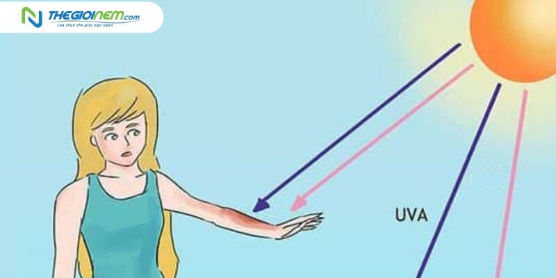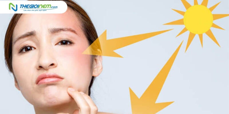 - Cháy nắng: khi tiếp xúc quá lâu với ánh nắng mặt trời mà không bảo vệ da có thể gây cháy nắng. Điều này gây ra sưng, đỏ, đau và bong da, và trong trường hợp nặng hơn, có thể gây viêm da và nhiều vấn đề khác liên quan đến da.