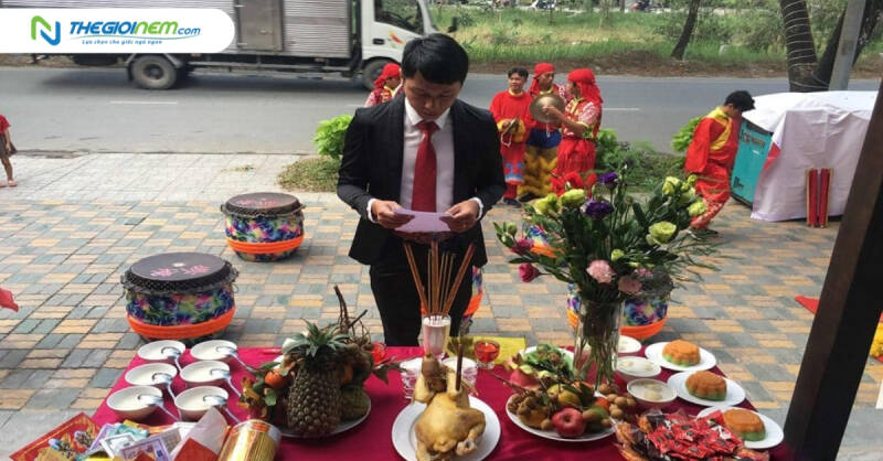 Con tên là (nói họ tên thật)... ngụ tại (nói địa chỉ hiện đang cư ngụ)... thành tâm sửa biện hương, hoa, lễ vật và các thứ cúng dâng bày ra trước sự linh thiêng. Kính cáo chư vị linh thần, cúi mong soi xét và cho phép được khai trương (khai trương việc gì nói rõ).