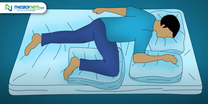 Bắt chéo chân không chỉ làm giảm lưu thông máu ở chân mà còn dễ khiến xương chân bị cong hoặc các cơ chân bị chệch ra ngoài. Nếu bạn hay ngủ trong tư thế này, bạn hãy kê ngay một chiếc gối ở dưới hai bắp chân để cố định lại.