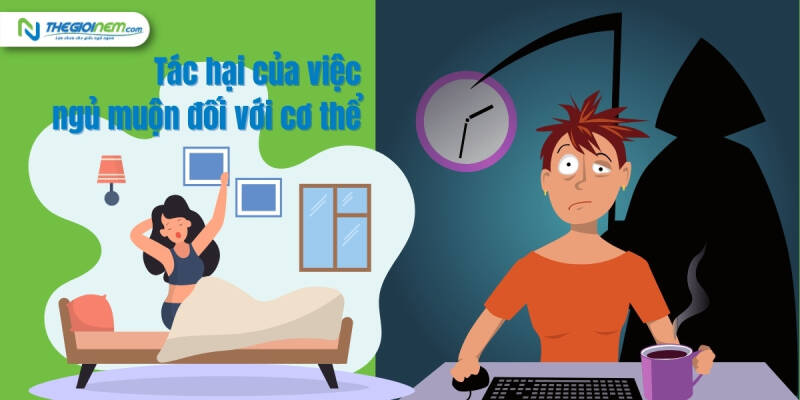 - Tác hại của việc ngủ muộn khiến cơ thể lão hóa nhanh