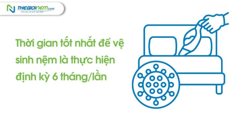 Riêng đối với nệm, các chuyên gia khuyên bạn nên vệ sinh 6 tháng/lần hoặc có thể thường xuyên hơn là 3 tháng/lần. Nhưng khi vô tình làm đổ thứ gì đó lên nệm thì tốt nhất hãy làm sạch ngay trước khi vết bẩn bám sâu vào bề mặt nệm. Vệ sinh nệm cần sử dụng các loại hóa chất phù hợp để tránh làm giảm tuổi thọ cũng như bảo vệ bề mặt nệm tốt hơn và bạn sẽ không cần phải làm sạch nệm thường xuyên.